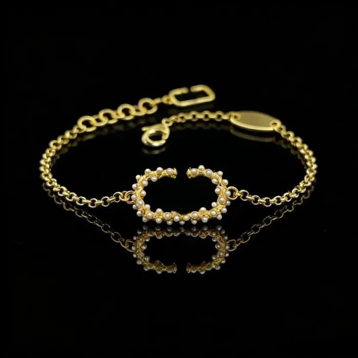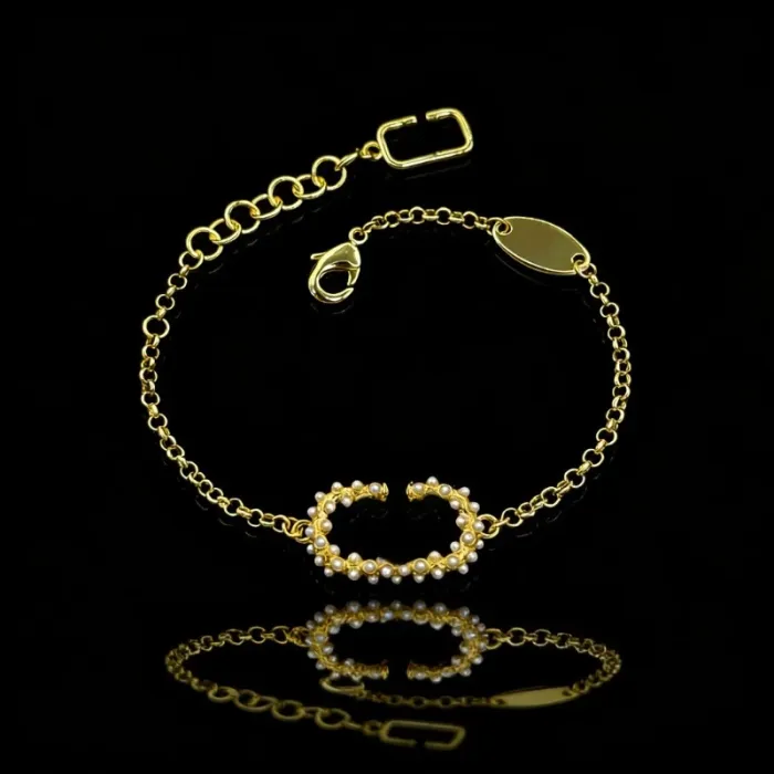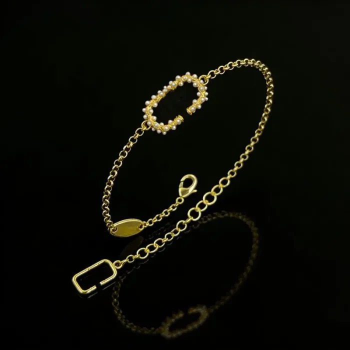 2026 New S925 Silver Luxury Fashion Trend Retro Versatile Gold Letter Pearl Niche Bracelet As A Holiday Gift