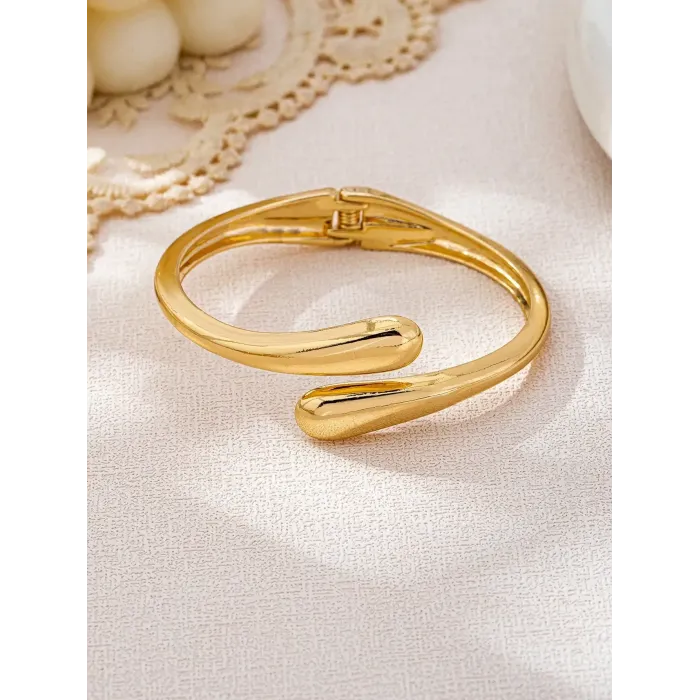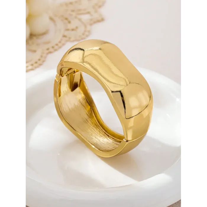 3pcs/Set Minimalist Geometric Metal Bangle Bracelet Set, Thick Solid Gold-Tone Alloy Material, Suitable For WomenCV