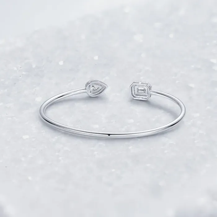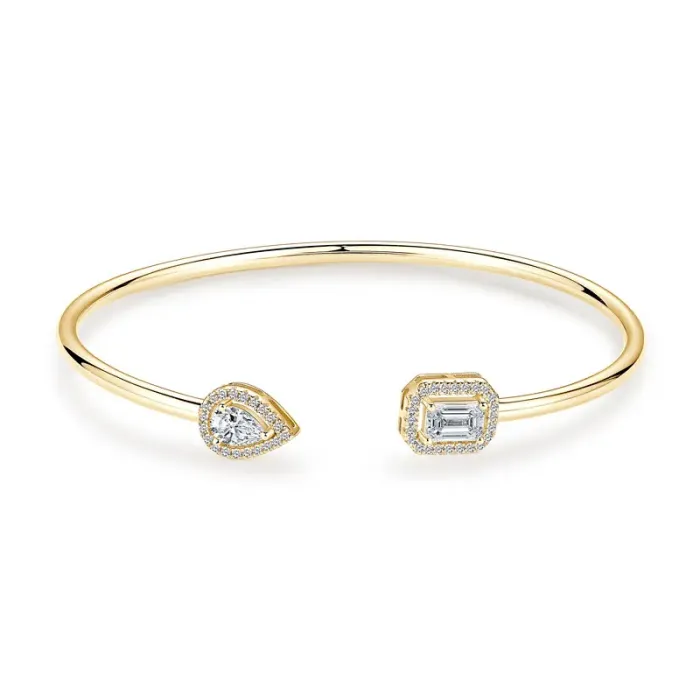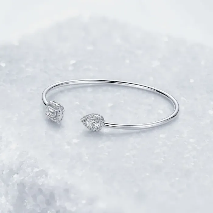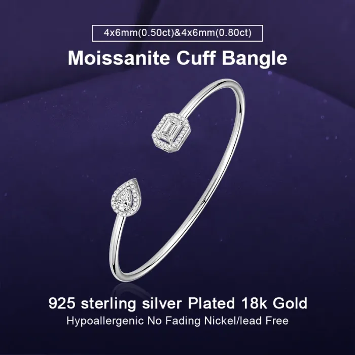 IOGOU 0.5CT Pear Cut&0.8CT Emerald Cut Twin Diamond Moissanite Cuff Bangle for Women Luxury Original Pure 925 silver Party Gift