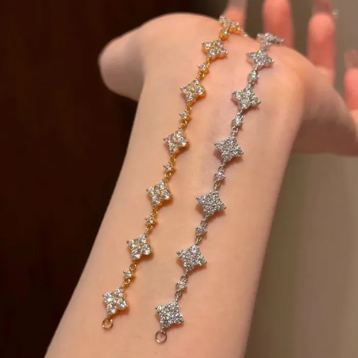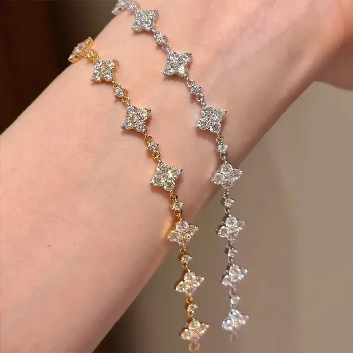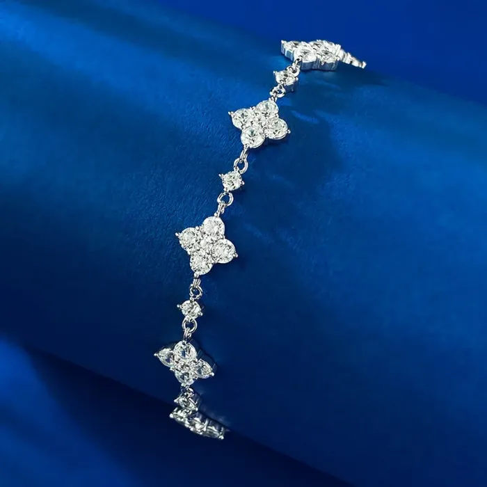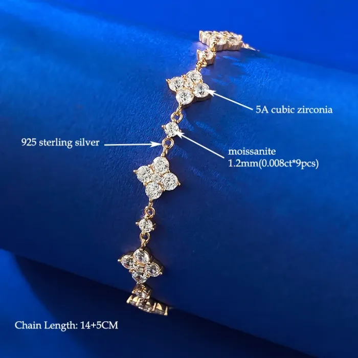 IOGOU Clover Flower 1.2mm D Moissanite Diamond Bracelet for Women Real 925 Sterling Silver Bracelets Exquisite Hand Jewelry Gift