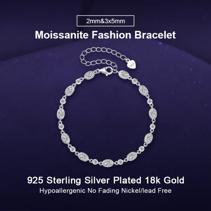 IOGOU Luxury 2mm&3x5mm Full Moissanite Moissanite Diamond Tennis Bracelet for Women Real Silver 925 Fashion Engagement Jewelry