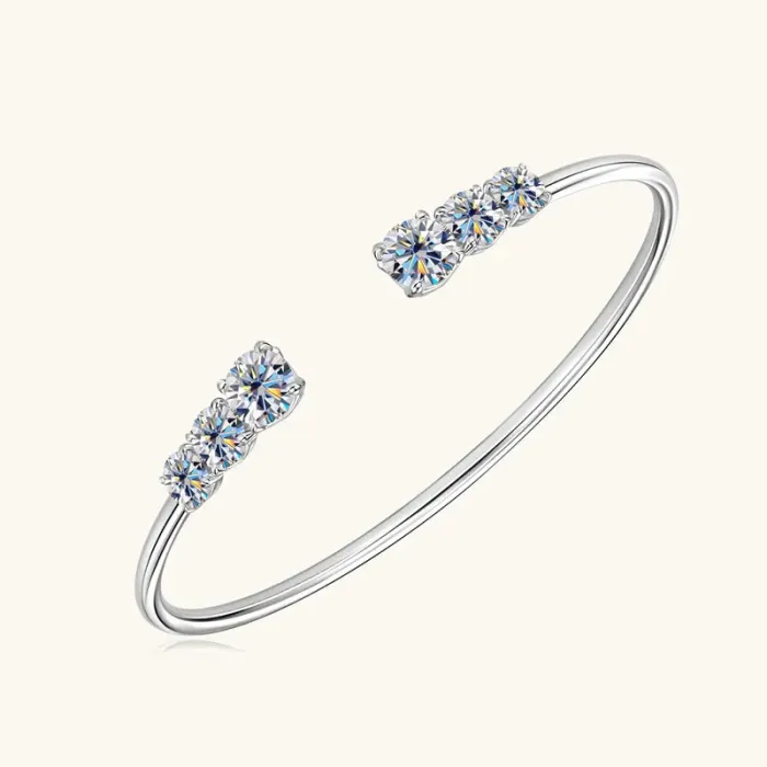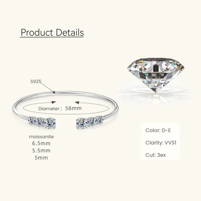 IOGOU Moissanite Diamond Cuff Bracelet Inlaid 6.5mm&5.5mm&5mm D Color Pure 925 Sterling Silver Fashion Open Bracelet for Women