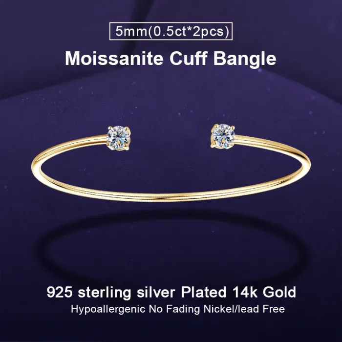 - Model Number: 925 Sterling Silver Round Cut Moissanite Cuff Bangle\n \n