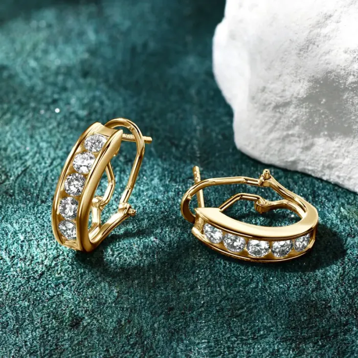IOGOU 1.0CTW. 3mm Moissanite Hoop Clip Earrings Gold Plating 14k 925 Silver Hypoallergenic Earrings for Women Luxury Jewelry