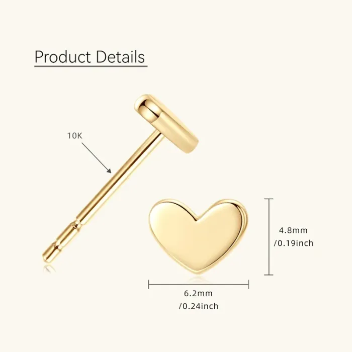 IOGOU 10K Solid Gold Mini Heart Stud Earrings for Women Men Engagement Party Trendy High Quality Fine Jewelry Accesories Gift