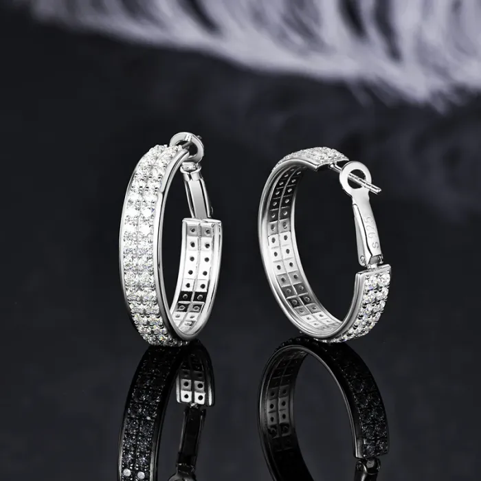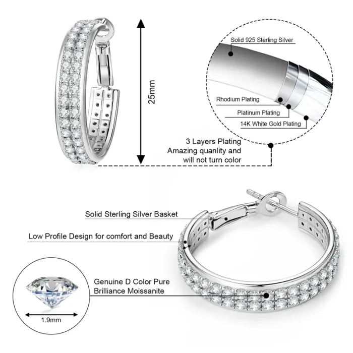IOGOU D1.57CT Full Moissanite Earrings 925 Sterling Silver Hoop Clip Earrings for Women Luxury Engagement Party Birthday Gift