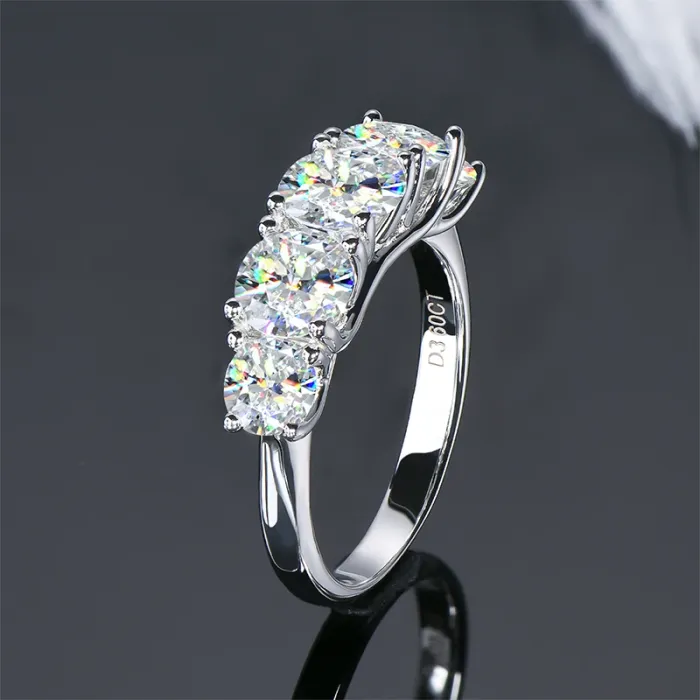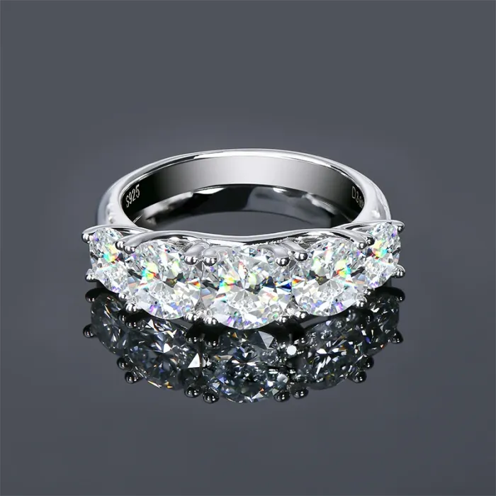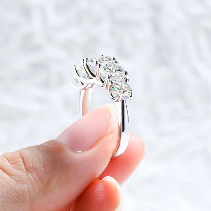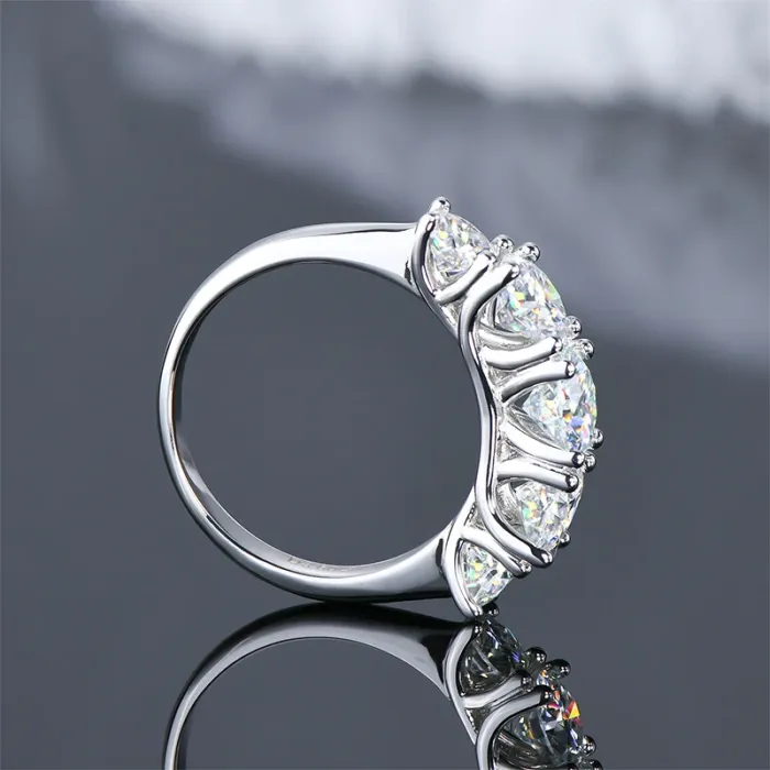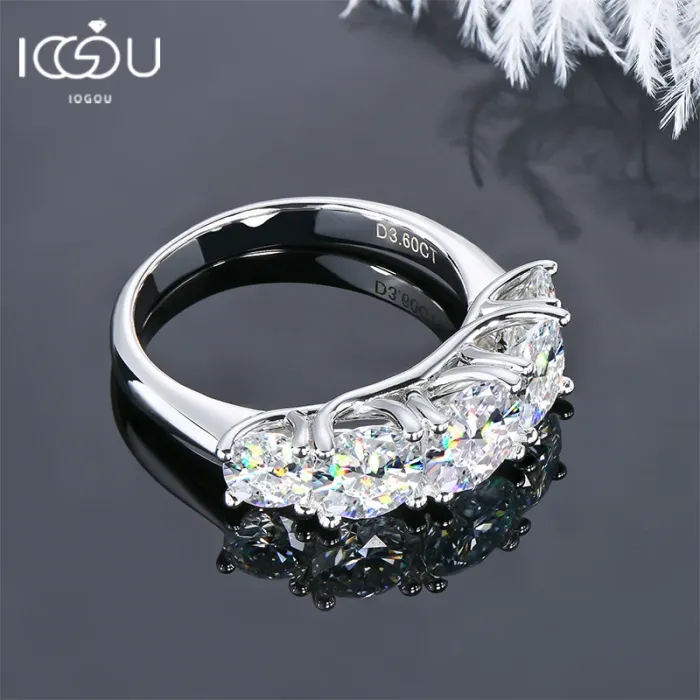 IOGOU 18k White Gold Plated D3.6CT 5 Stones Moissanite Rings for Women S925 Sterling Silver Sparkling Diamond Wedding Band Jewelry