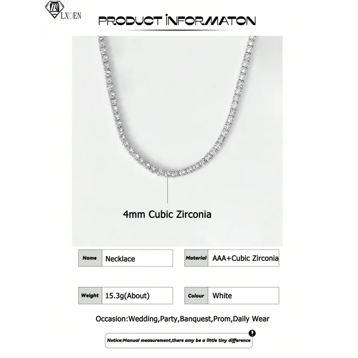 4mm Iced Out Tennis Chain Necklace with Cubic Zirconia for Women