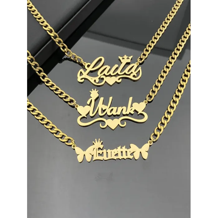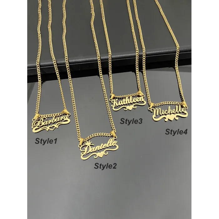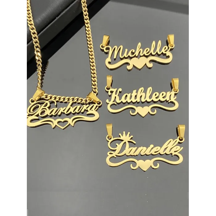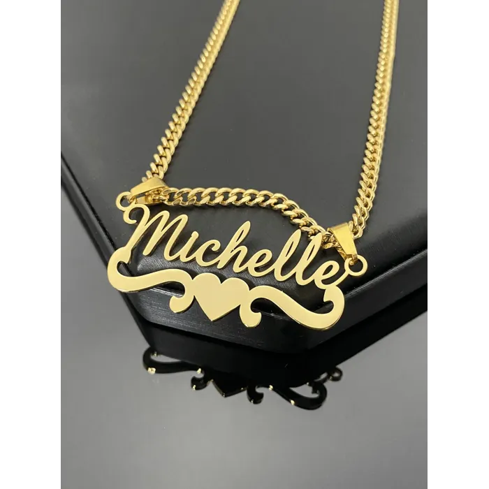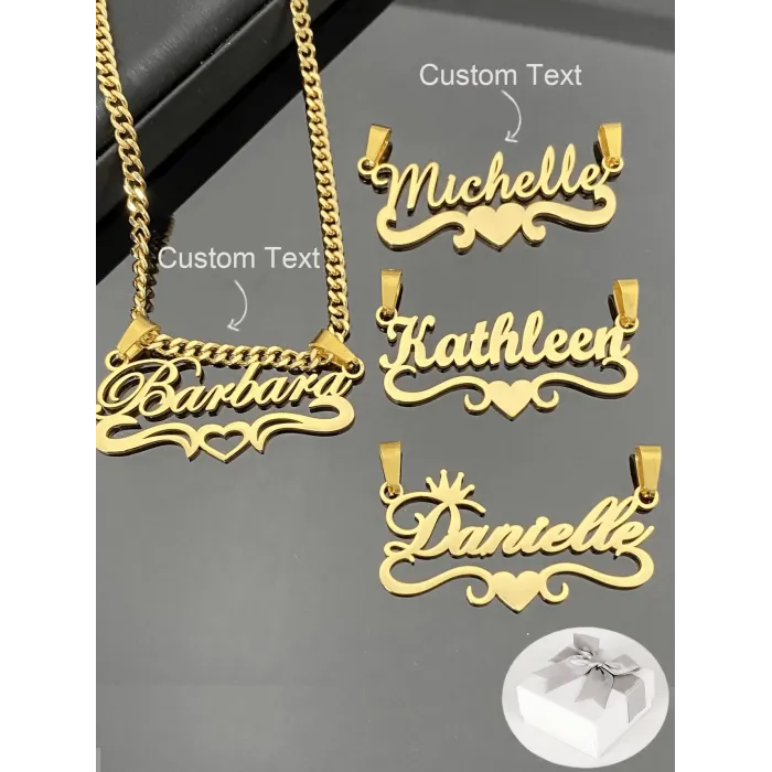 Custom Script Name Necklace with Heart Detail, 18K Gold-Plated Stainless Steel Pendant for Women