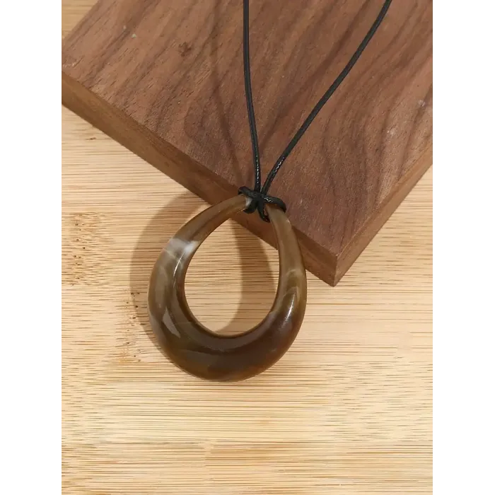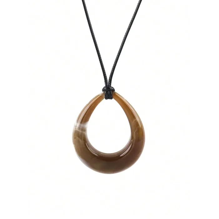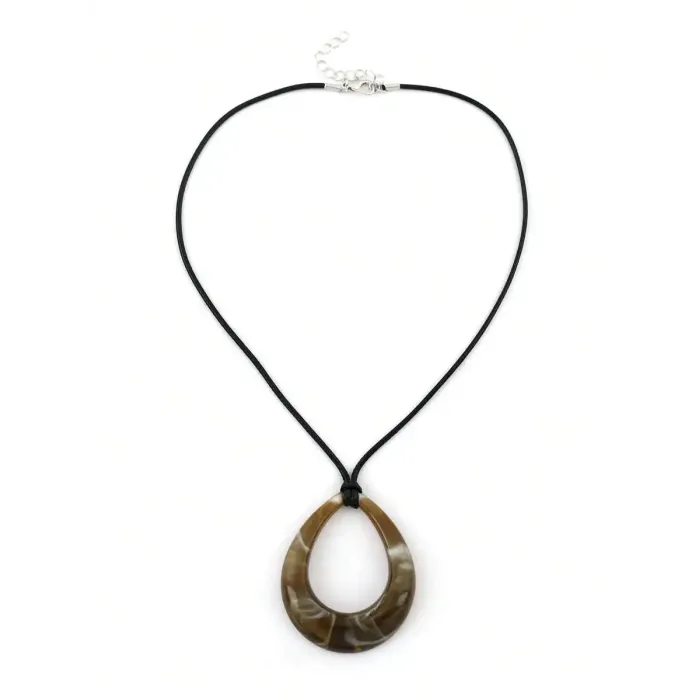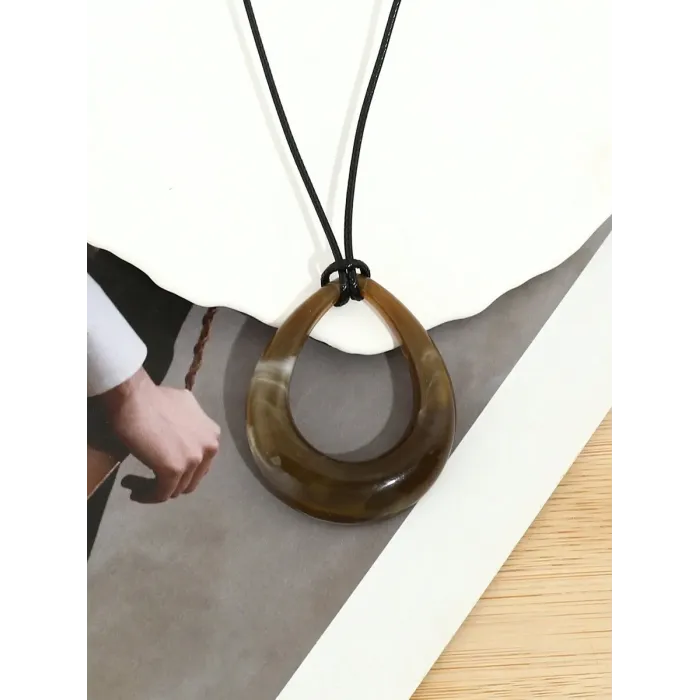 Geometric Teardrop Acrylic Pendant on Black PU Leather Cord Necklace