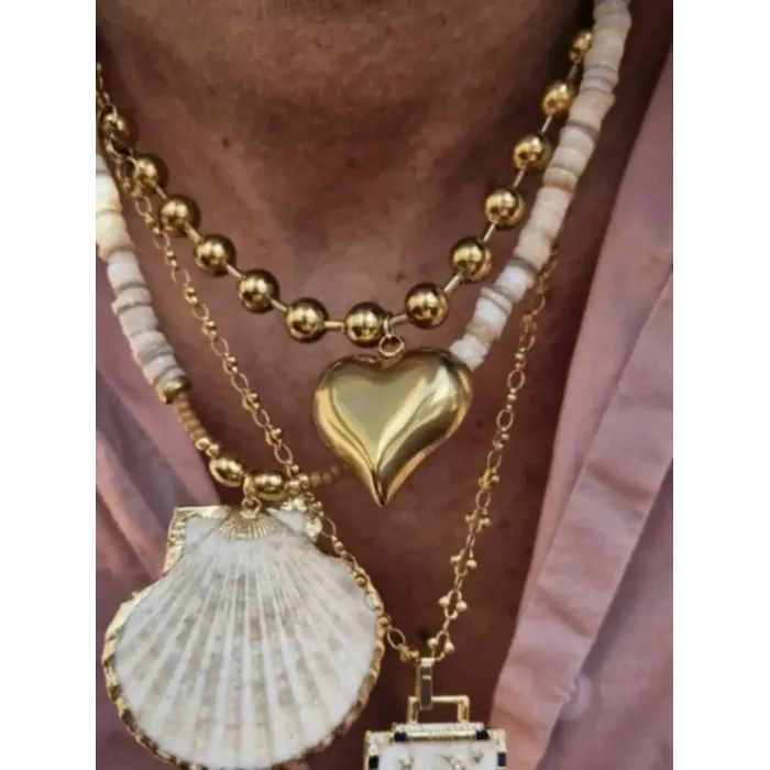 Gold-Tone Beaded Chain Necklace with Polished Heart Pendant for Women