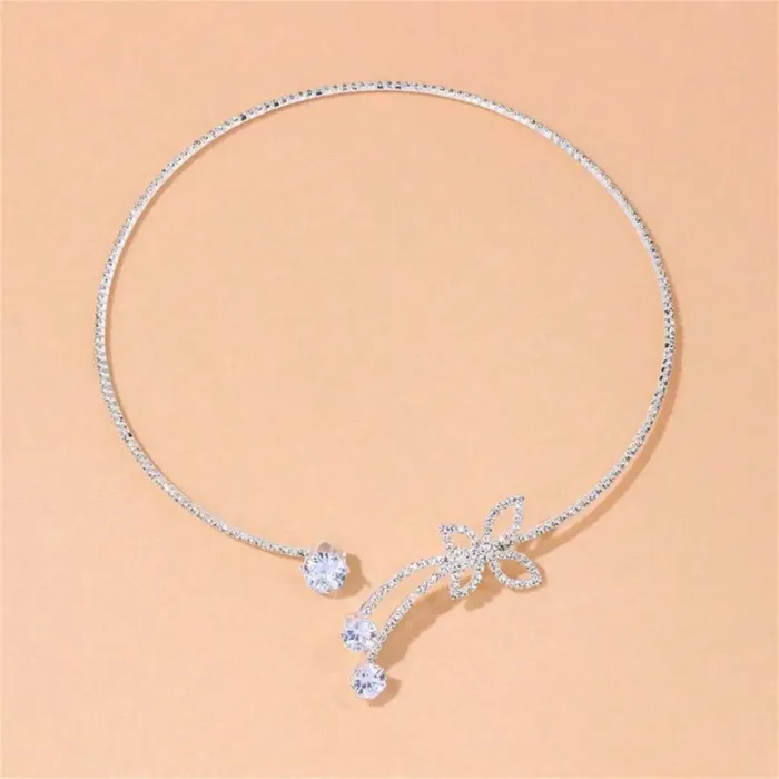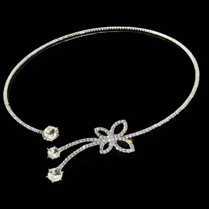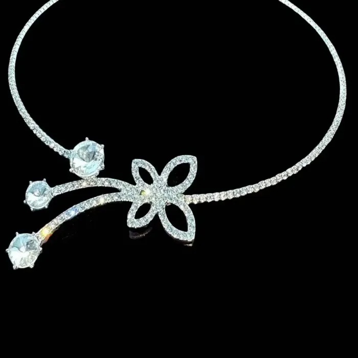 Rhinestone Floral Choker Necklace with Bowknot Detail for Women