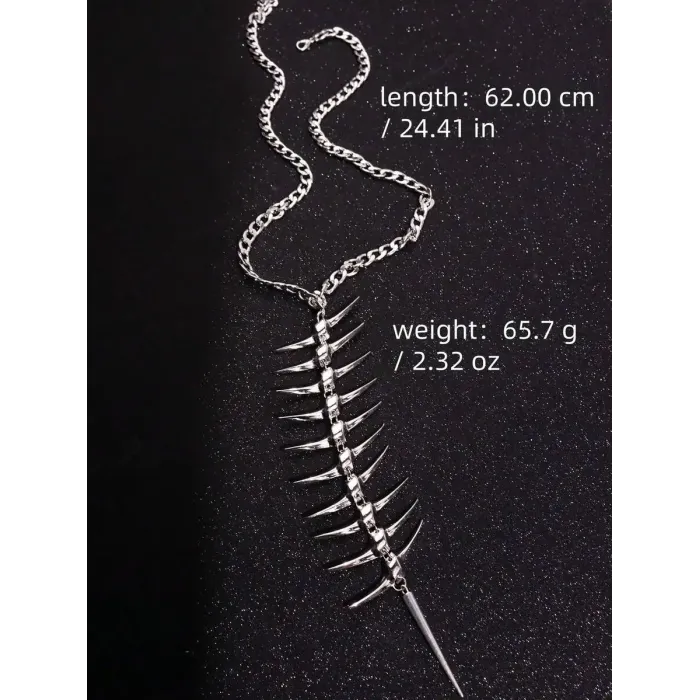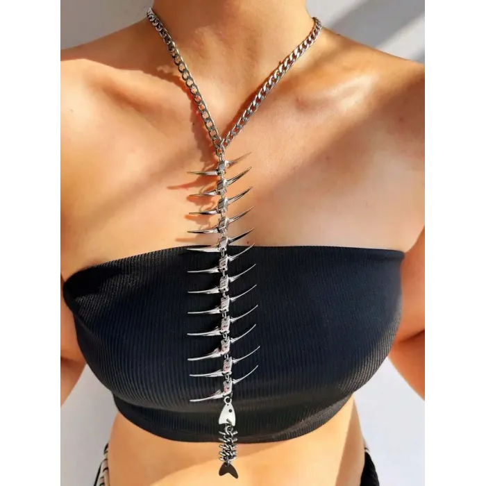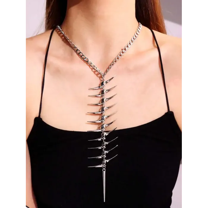 Silver Spike Spine Chain Back Necklace for Punk Streetwear Outfit