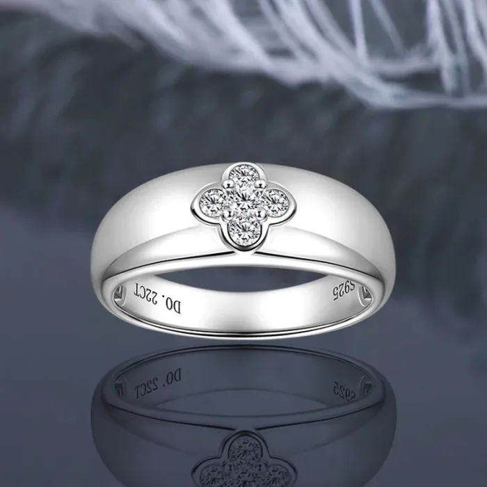 IOGOU 2.5mm&2.2mm Moissanite Chunky Ring for Women 925 Silver Clover Flower Rings Lucky Finger Charm Bands 2025 Trendy Jewerlry
