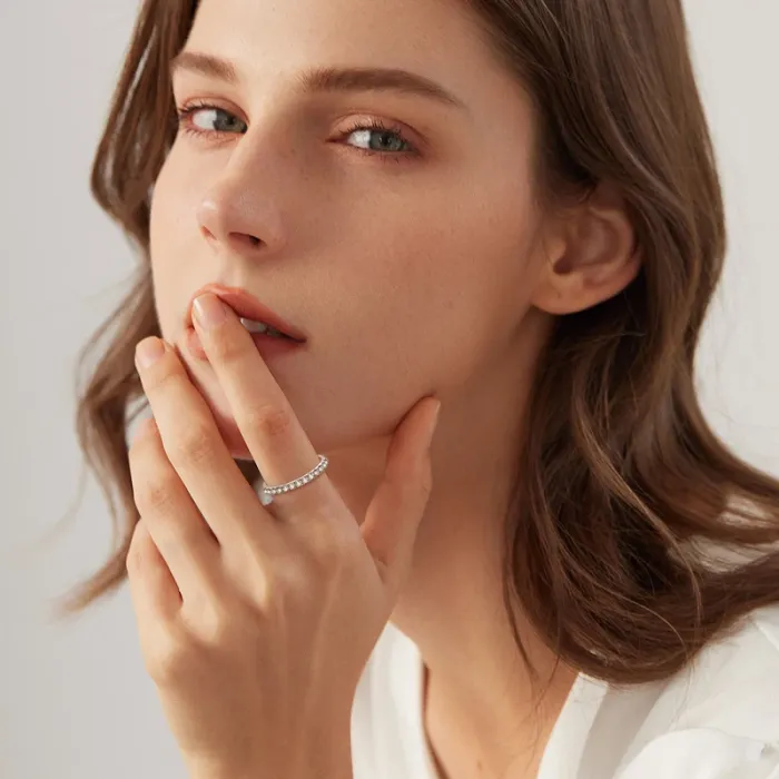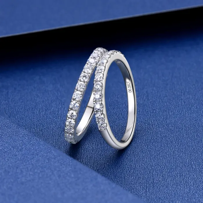 IOGOU 2mm D Color Moissanite Ring Thin Wedding Band Half Eternity Stackable Rings Original Silver 925 Sterling for Women Jewelry