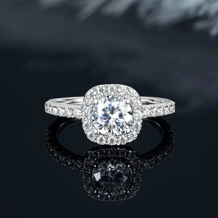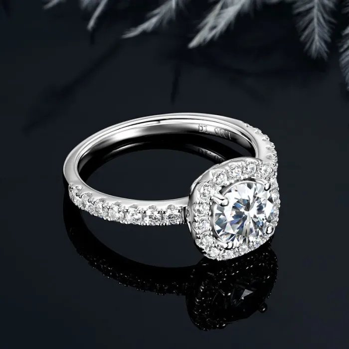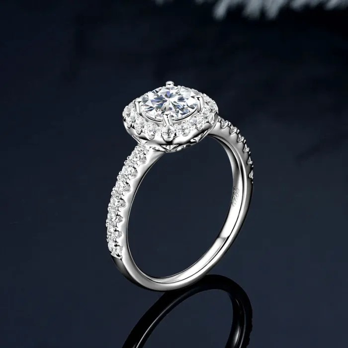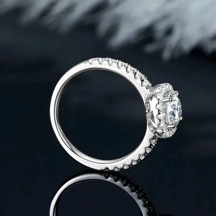 IOGOU Classic 6.5mm D1.0CT Round Moissanite Diamond Wedding Halo Ring for Women Real 925 Silver Original Engagement Fine Jewelry