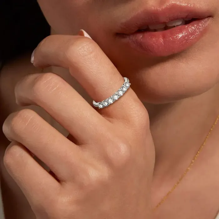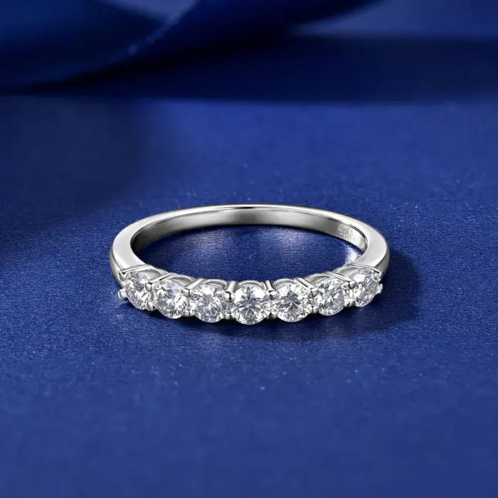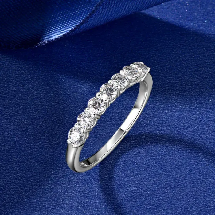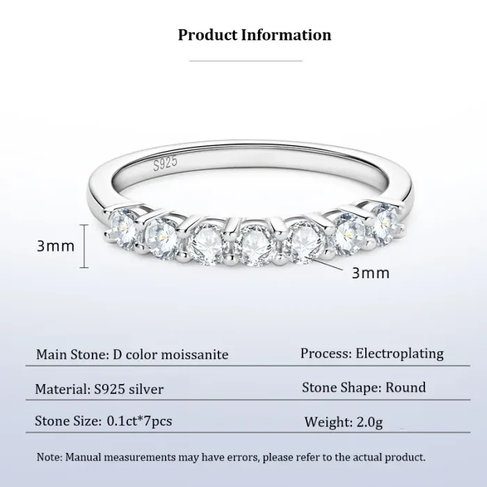 IOGOU Classic Half Eternity Ring 3mm Moissanite Lab Diamond Stackable Band 7-stone Rings for Women 925 Silver Finger Jewelry gra