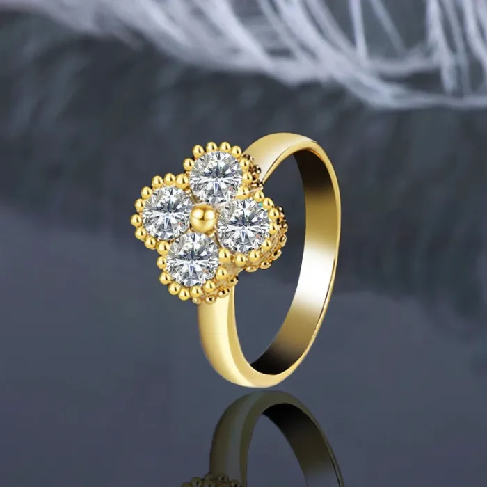 IOGOU Cute 4mm Moissanite Clover Flower Ring Band Gold Plated 18k 925 Silver for Women gra Certified Finger Jewerlry Valentine's