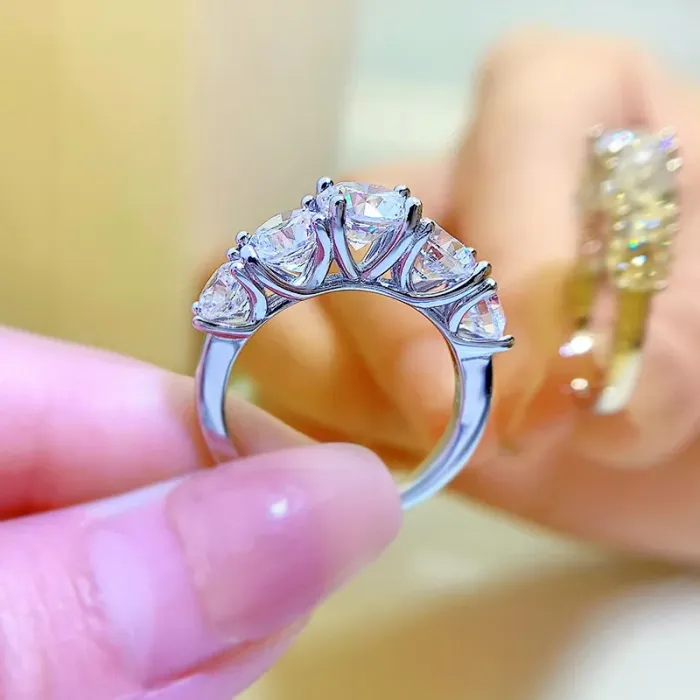 IOGOU Full Moissanite Engagement Rings for Women 925 Sterling Silver Original 5mm&6mm&6.5mm D Color 5-Stone Diamond Wedding Rings