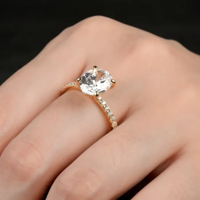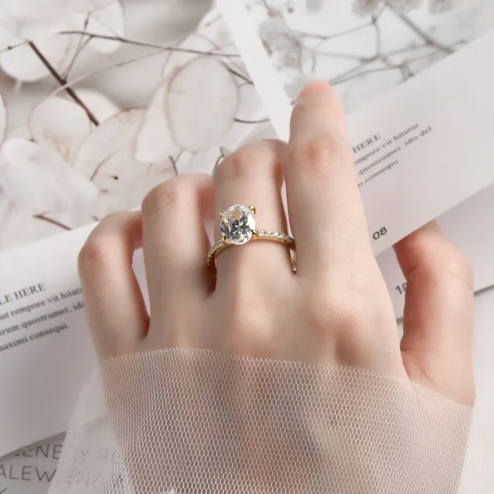 IOGOU Oval Cut Classic Engagement Ring for Women Real 925 Silver 10x8mm 5A Cubic Zircon Lab Diamond Wedding Rings Fine Jewelry