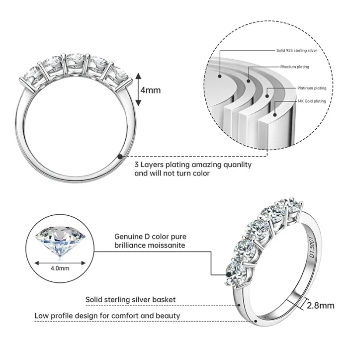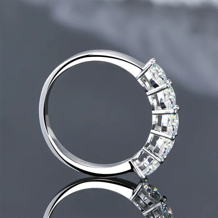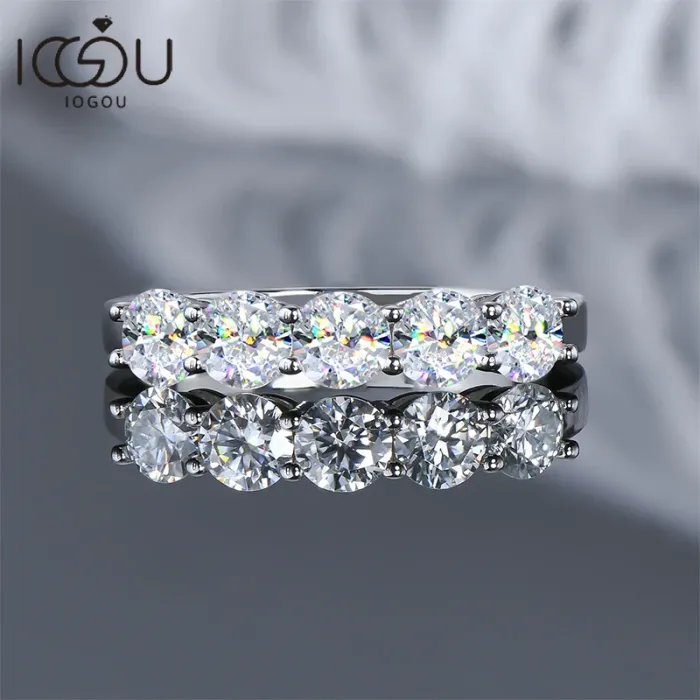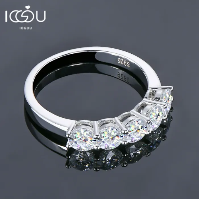 \n IOGOU 5-Stone Round 4.0mm D Moissanite Half Eternity Wedding Band Rings for Women Silver 925 Real Fine Jewelry with Certificate